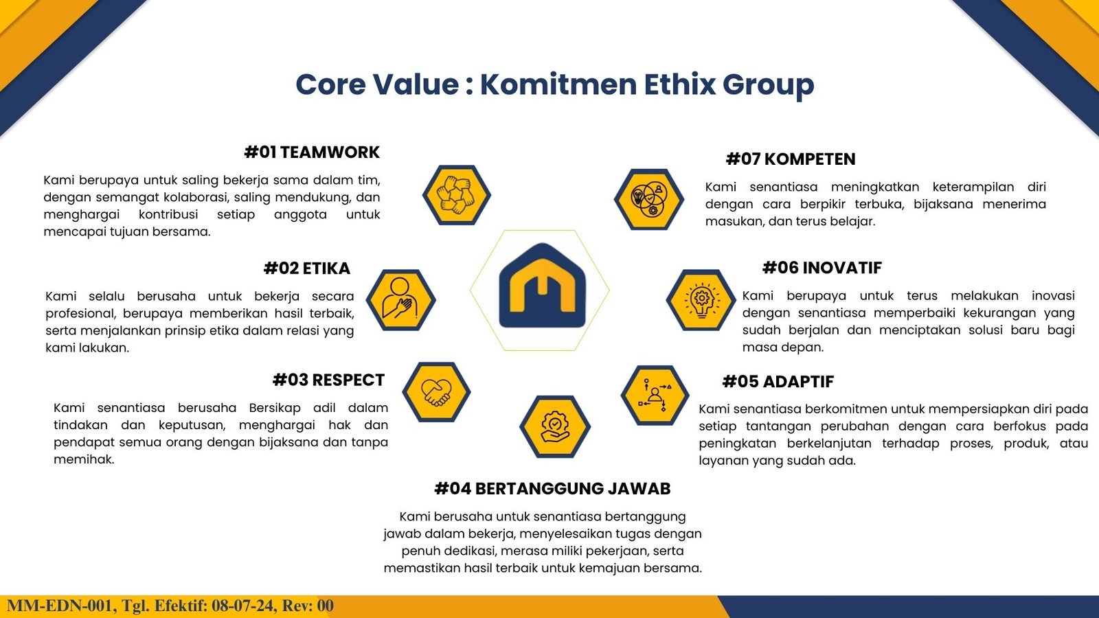 Platform ini dirancang untuk mempermudah akses pelatihan, mengembangkan kompetensi, dan memberdayakan setiap individu agar dapat tumbuh bersama perusahaan. Melalui Ethix Learn, kami ingin menciptakan ekosistem pembelajaran yang inklusif, progresif, dan berdampak nyata.